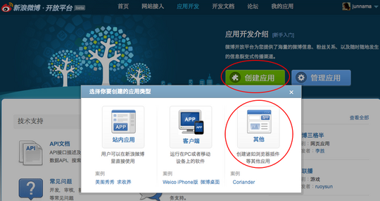 Post2Weiboを利用するにはWeiboに開発者登録してアプリケーションを作成する必要があります。