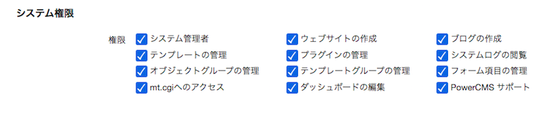 サポートにお問い合わせいただくには、システム権限「PowerCMS サポート」が割り当てられているユーザであることが必要です。この権限のないユーザには「サポート」リンクは表示されません。ユーザ情報編集画面からシステム権限の設定を行ってください。