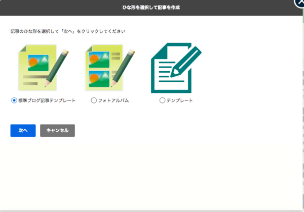 160 pixel * 160 pixel の画像をサムネイルとして登録することができます (アップロードされた画像は自動的にリサイズされます)。「記事」もしくは「ウェブページ」メニュー内「ひな形」を選択した際にひな形とともにサムネイルが表示されます。