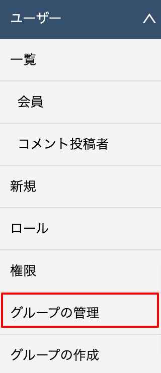 - サイドメニューから [ユーザー] - [グループの管理] を選択する