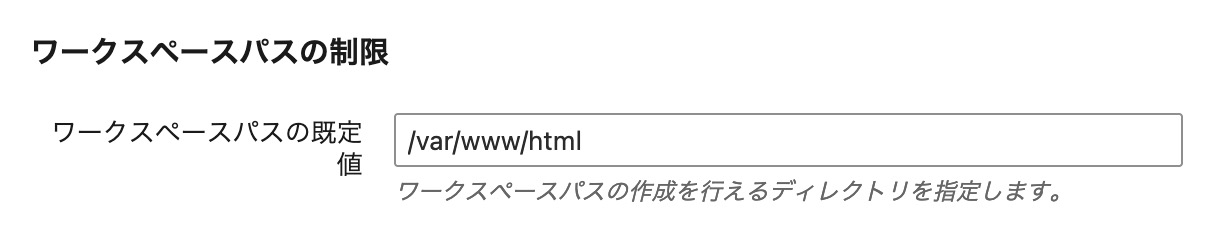 上記手順でワークスペースパスの制限が設定されます。制限の設定時には、絶対パスによる指定が必須となります。