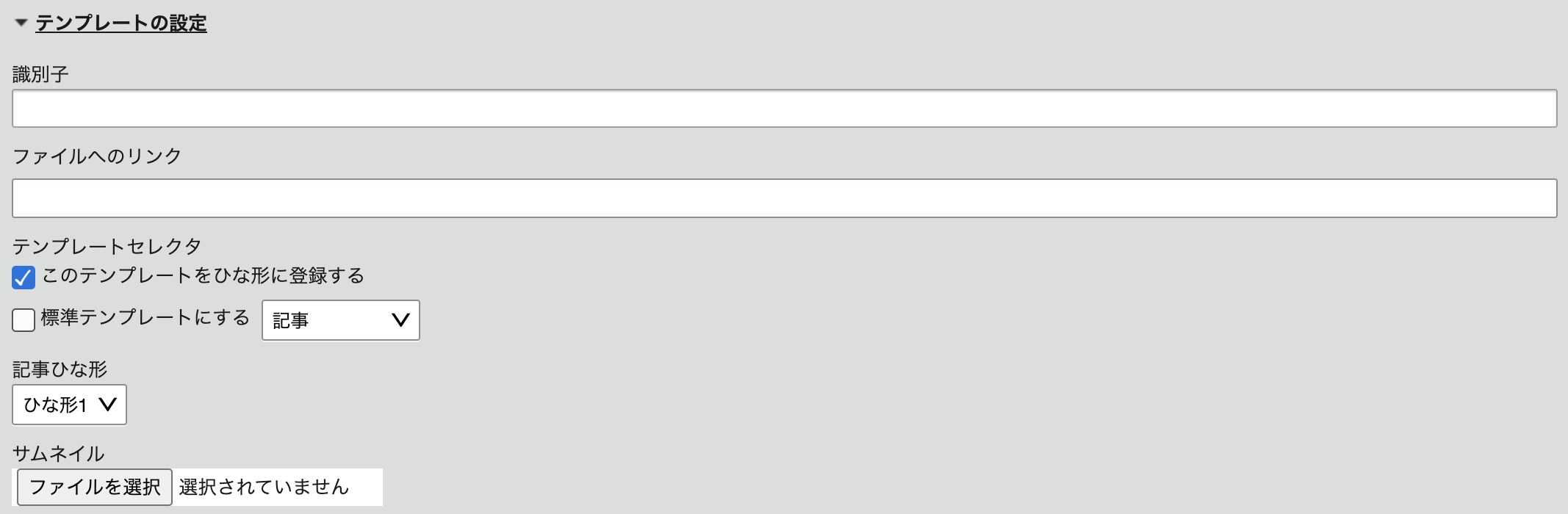 記事やウェブページを新規作成する時のデフォルトテンプレートにする場合、ここをチェックします。「新規」メニューから記事を作成する際にこのひな形が適用されます。